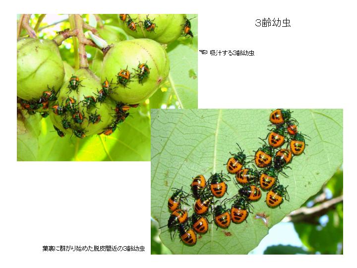 昼間は吸汁に余念がありません。夜間は葉裏などに群がり静止しています。